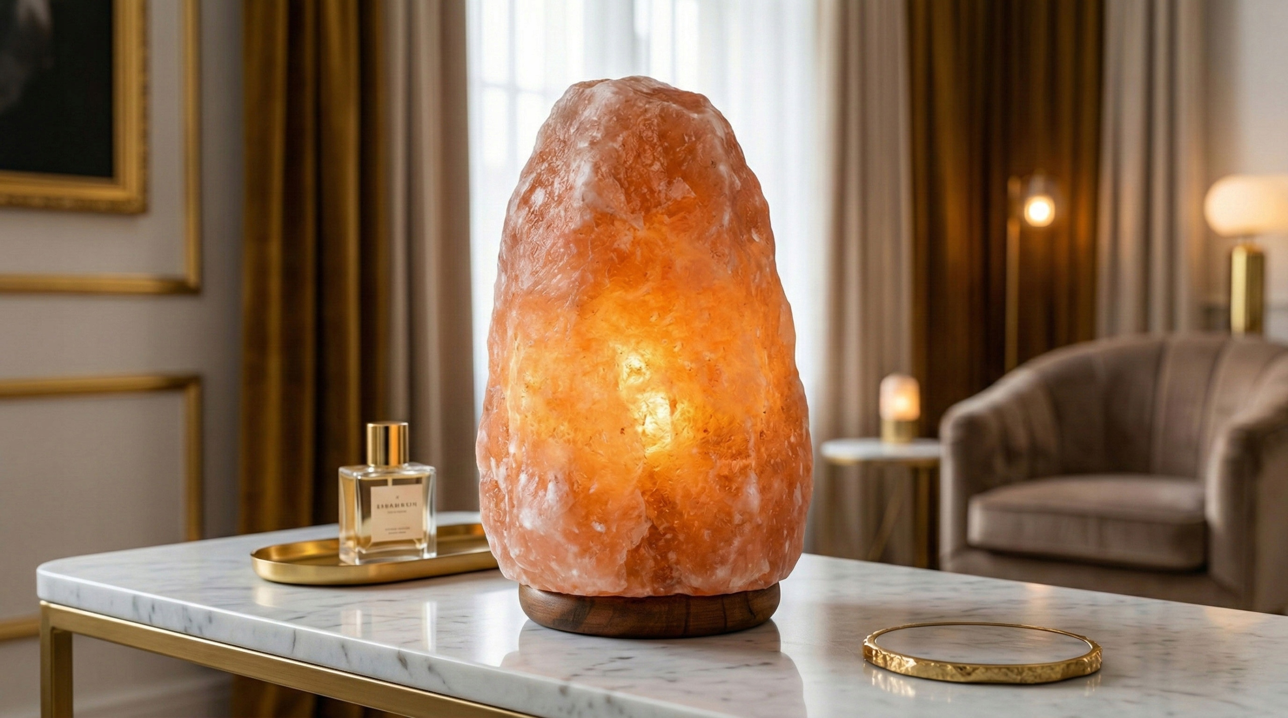 ✅ Jonizacja powietrza – sól himalajska w połączeniu z ciepłem żarówki wydziela jony ujemne, które mogą redukować wpływ jonów dodatnich emitowanych przez elektronikę (telewizory, laptopy, Wi-Fi).