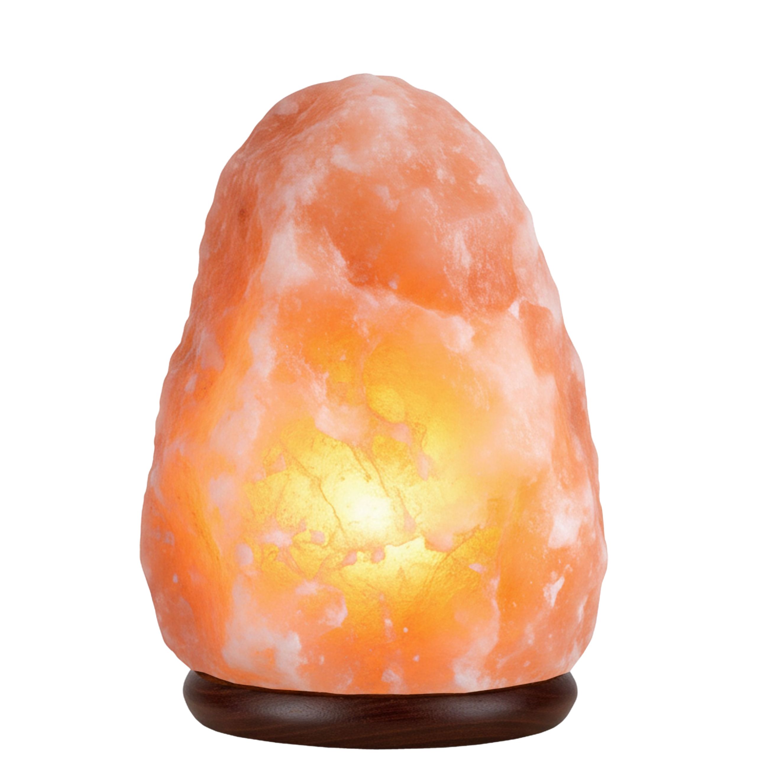 Lampa z bryły soli Himalajskiej na drewnianej podstawce
