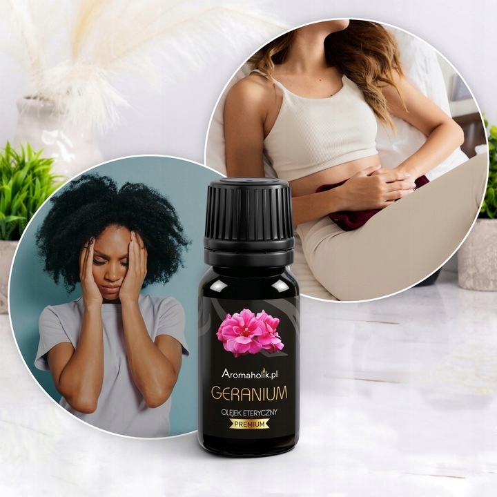 Olejek eteryczny z geranium charakteryzuje się kwiatowym aromatem, który otuli Cię uczuciem spokoju i odprężenia. Stosując go poczujesz rozluźnienie oraz wyciszenie, co sprawia, że jest on doskonały dla osób znerwicowanych, przebodźcowanych czy narażonych na niestabilność emocjonalną. Olejek geraniowy reguluje przebieg wahań hormonalnych, łagodzi bóle migrenowe oraz działa przeciwskurczowo, dlatego jest on szczególnie pomocny w trakcie zespołu napięcia przedmiesiączkowego.