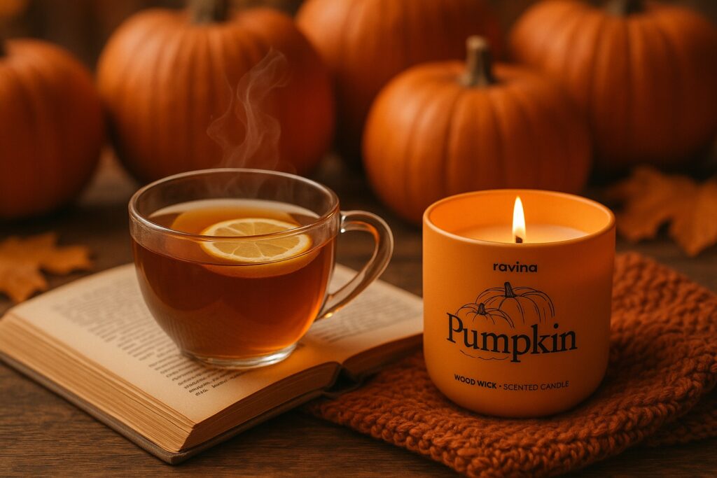 - Ciepły, korzenny aromat – zapach dyni i przypraw wprowadza do wnętrza przytulny, jesienny nastrój.