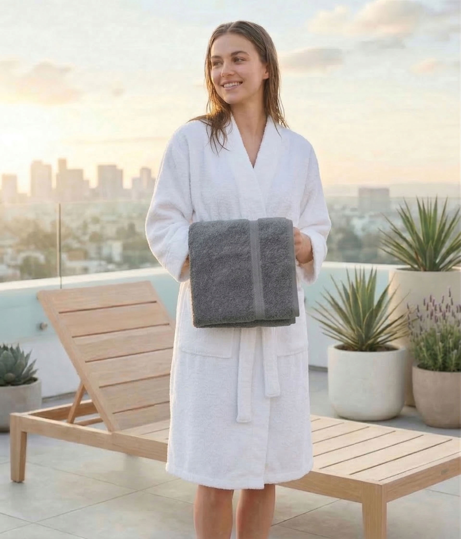 Naturalna bawełna o pętelkowym splocie chłonie wodę natychmiast, osuszając ciało bez konieczności intensywnego wycierania.